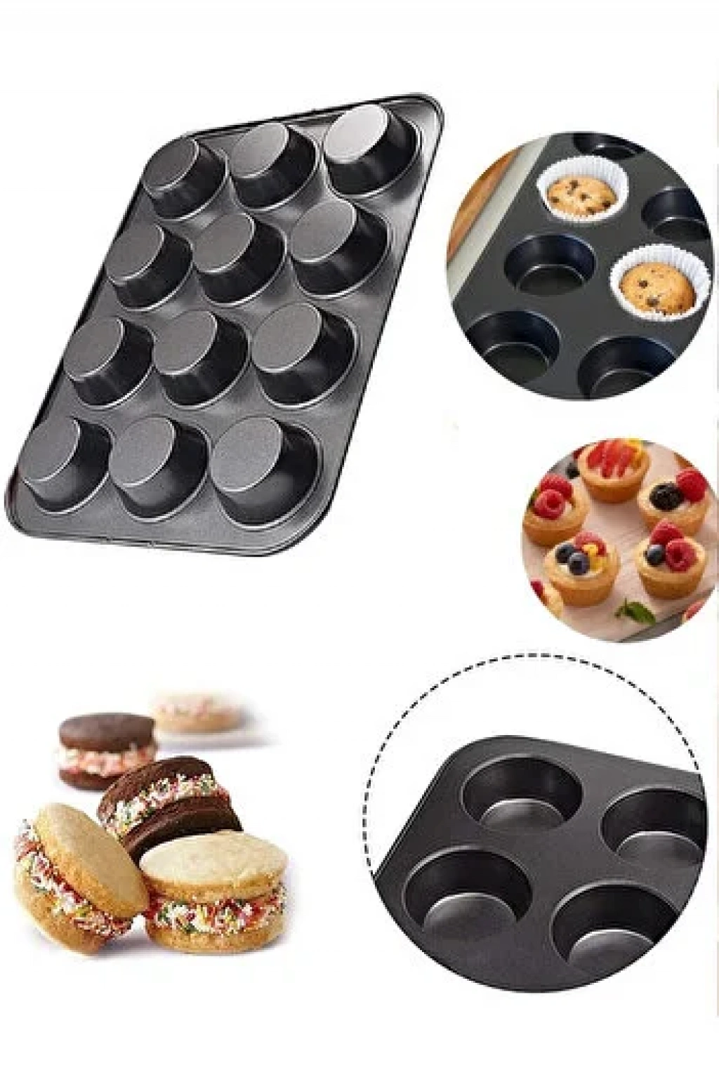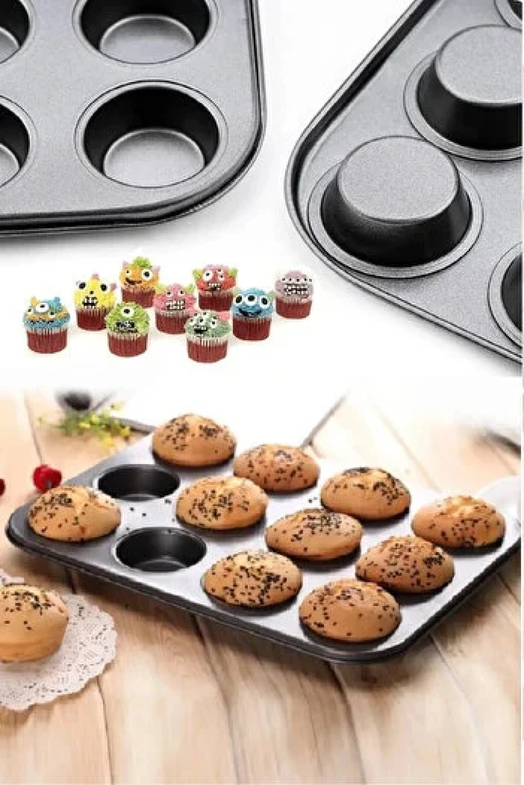 12 Bölmeli Muffin Kek Kalıbı Kurabiye Turta Kalıbı Fırın Pasta Çörek Kapsül Yanmaz Kalıp