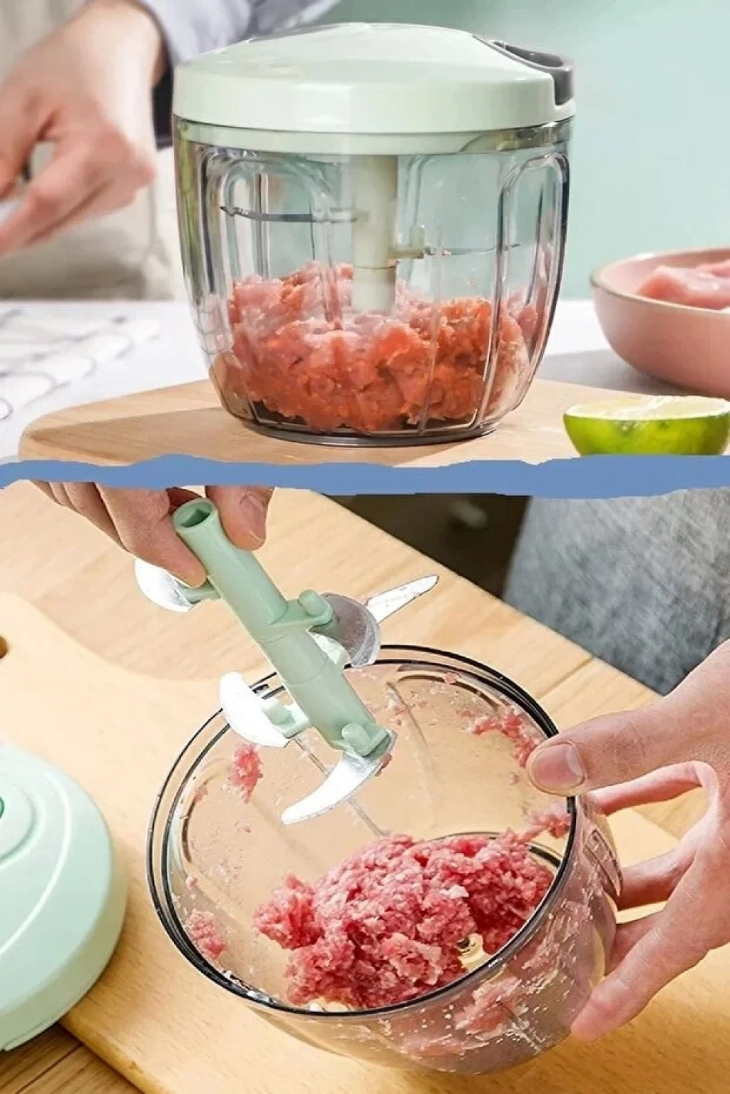 Pratik İpli El Rondosu 5 Çelik Bıçaklı Büyük Boy Et Soğan Sebze Meyve Doğrayıcı Blender Rende Mavi