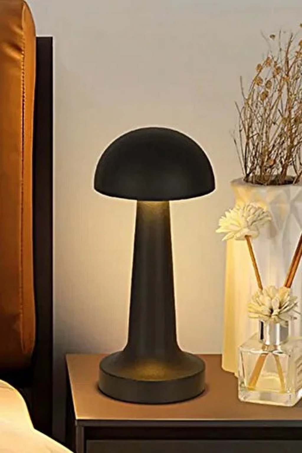 Mantar Model Retro Masa Lambası Siyah Dimmerli Şarjlı Dekoratif Masaüstü Dekoratif Mantar Lamba