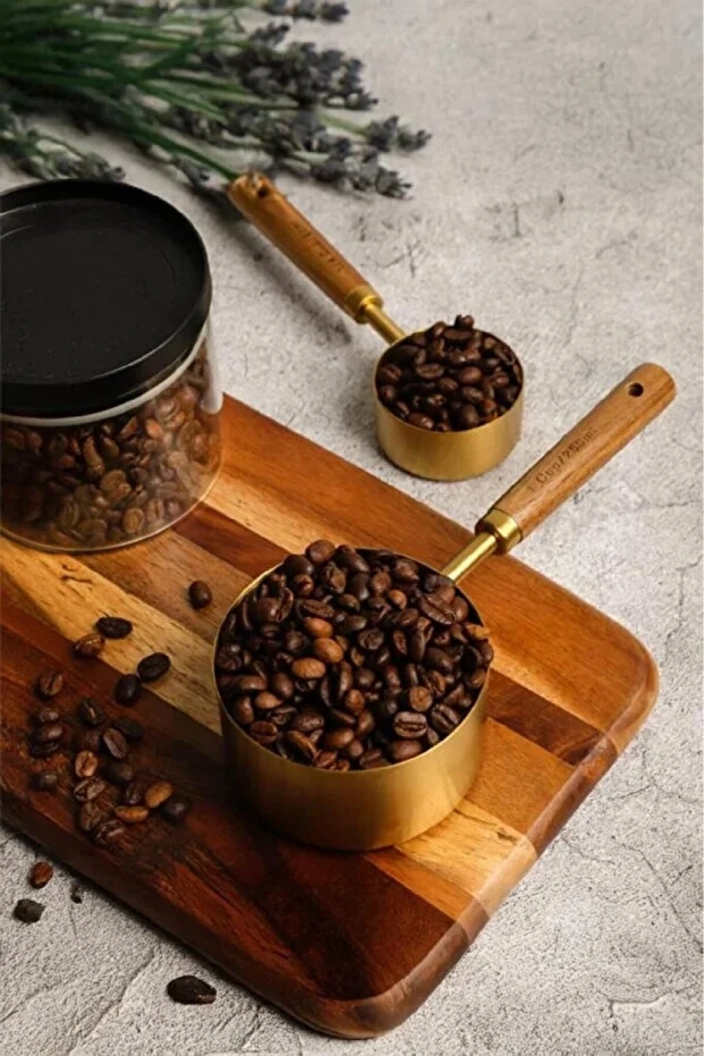 4lü Gold Büyük Boy Paslanmaz Çelik Ahşap Saplı Ölçü Kaşığı Seti Ölçü Kabı | 60-80-125-250 ML