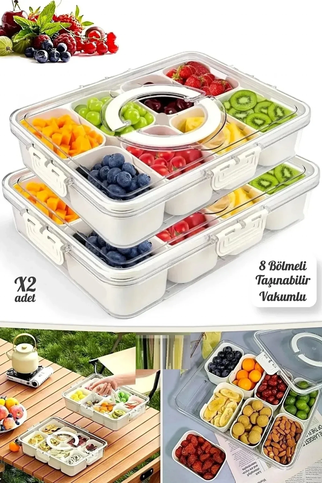 Paket İçeriği: 2 Adet 8 Bölmeli Taşınabilir Saklama Kabı Kahaltılık Piknik Seti Bulunmaktadır.