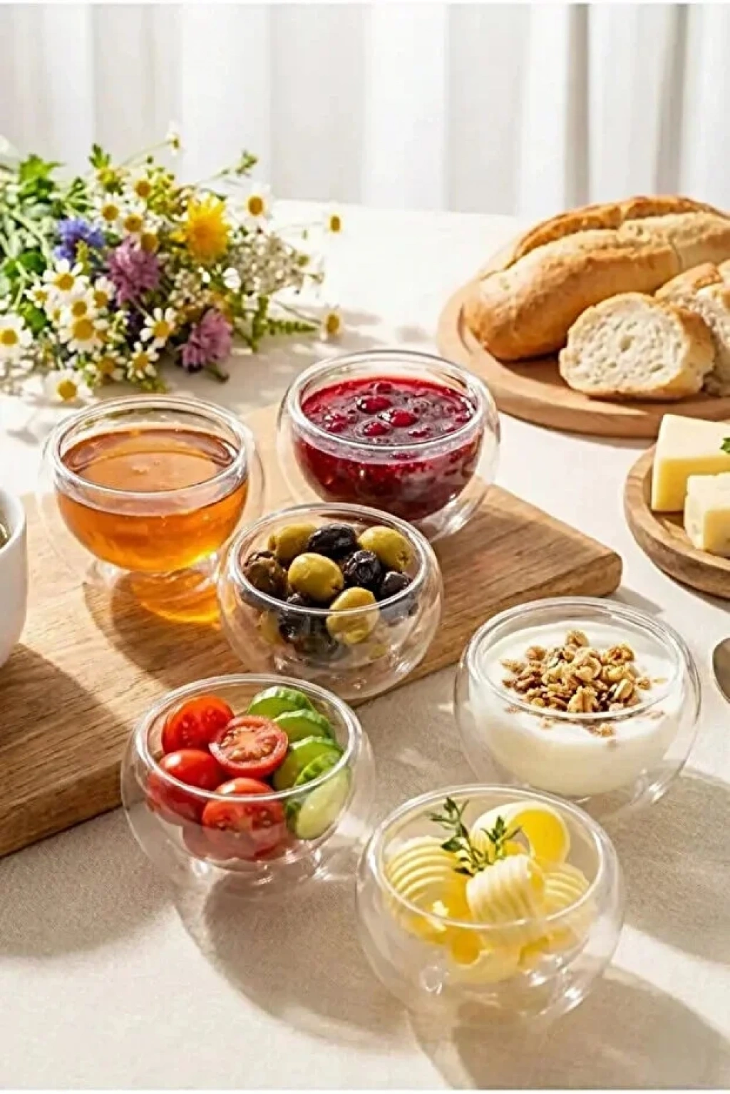 Çift Cidarlı Kase Mini Seti Lokumluk Sosluk Reçellik Drajelik Mini Servis Cam Kase Seti | 12 Adet