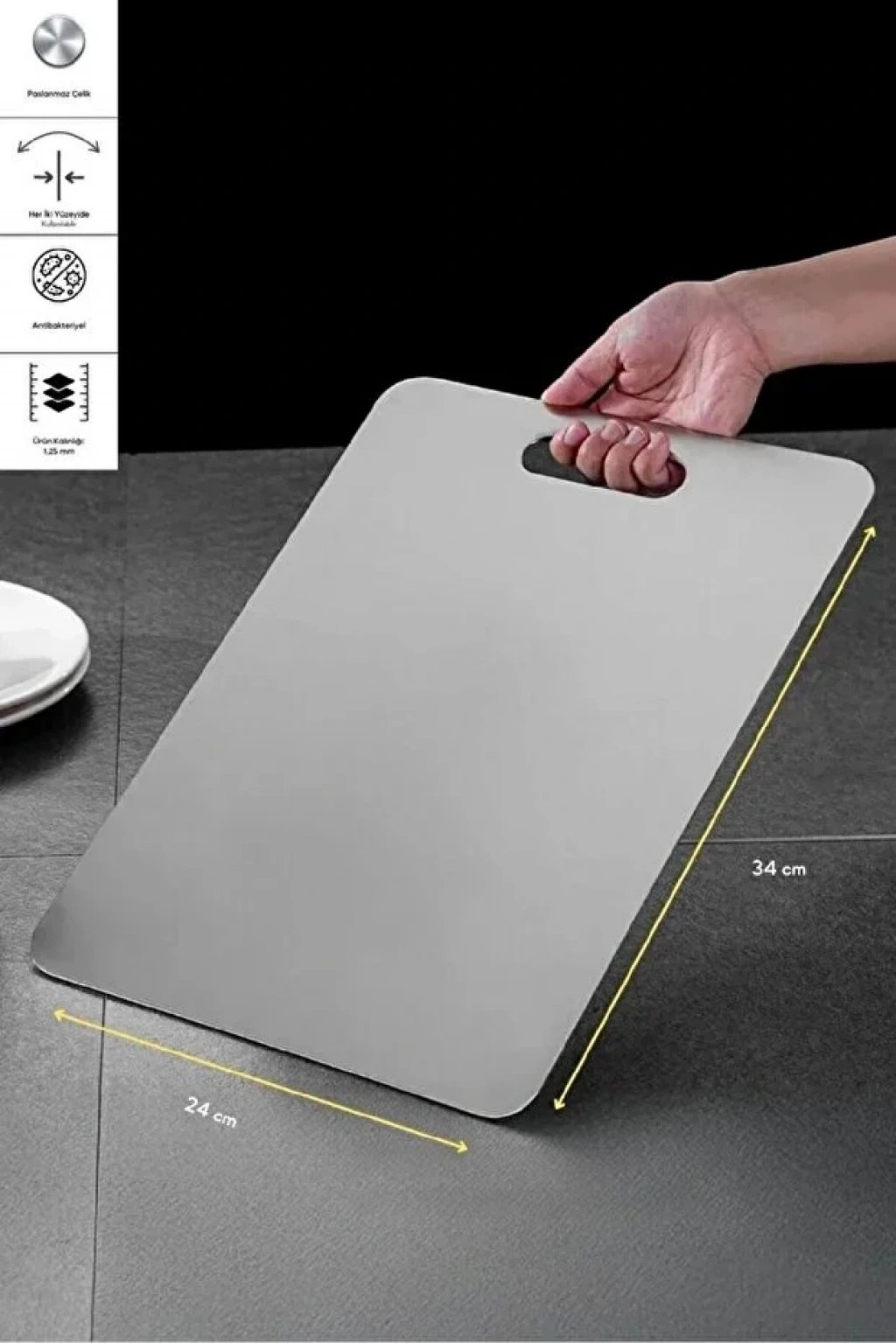 Paslanmaz Çelik Metal Tezgah Koruyucu Kesme Çelik Tahtası Hamur Açma Tezgahı | 23X34