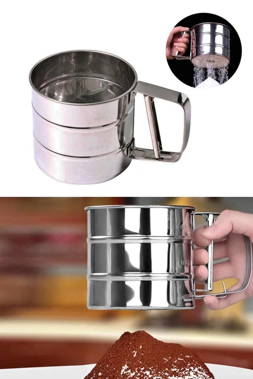Paslanmaz Çelik Un Eleği Pratik Basmalı Kakao Eleği Pudra Elek Çok Amaçlı Elek