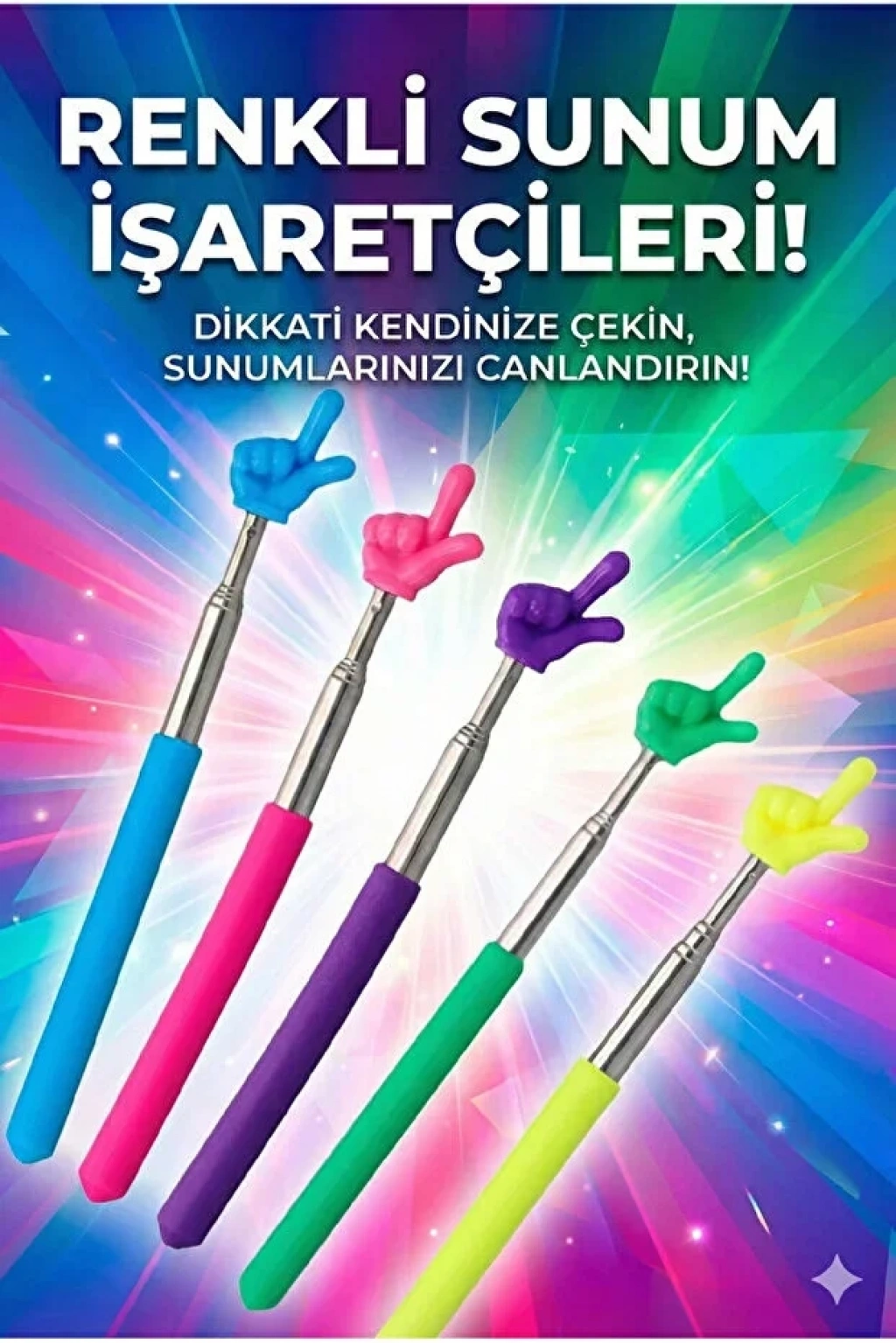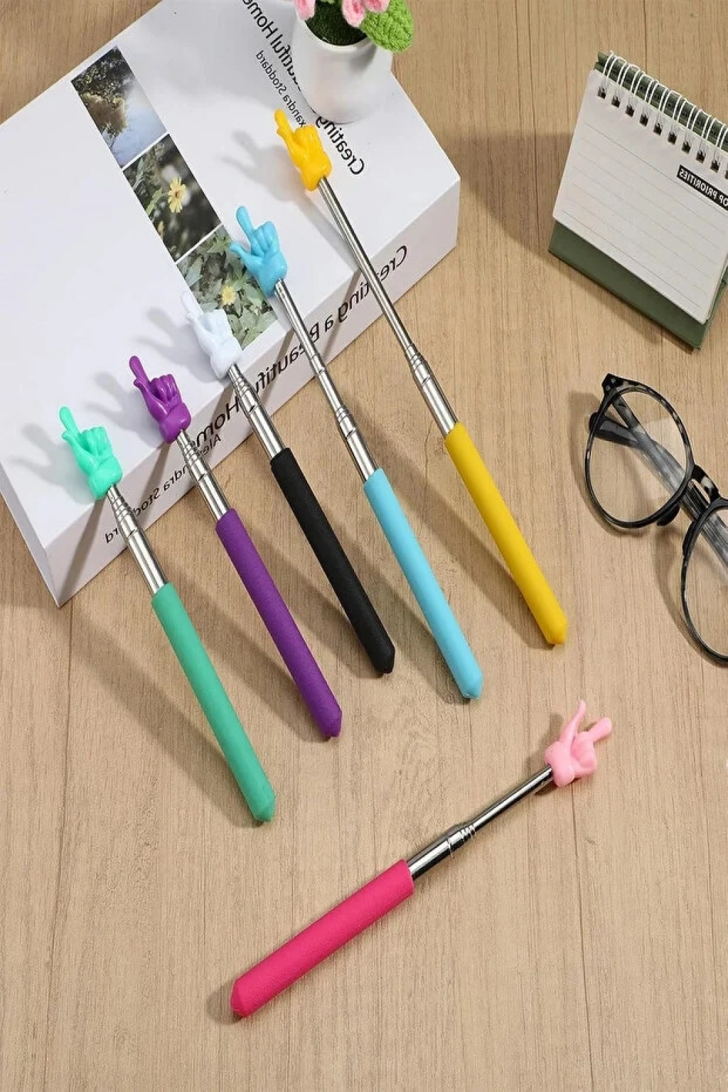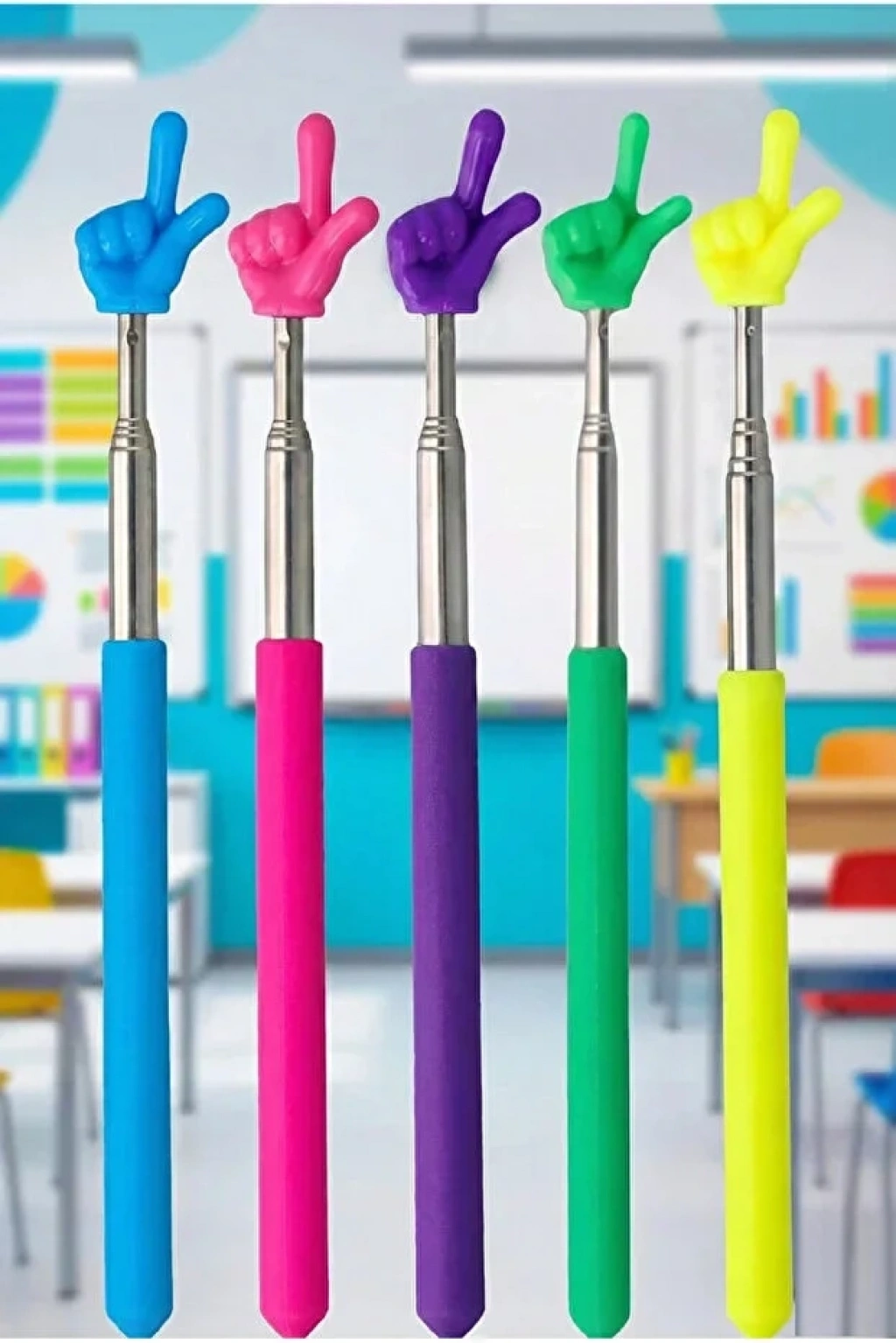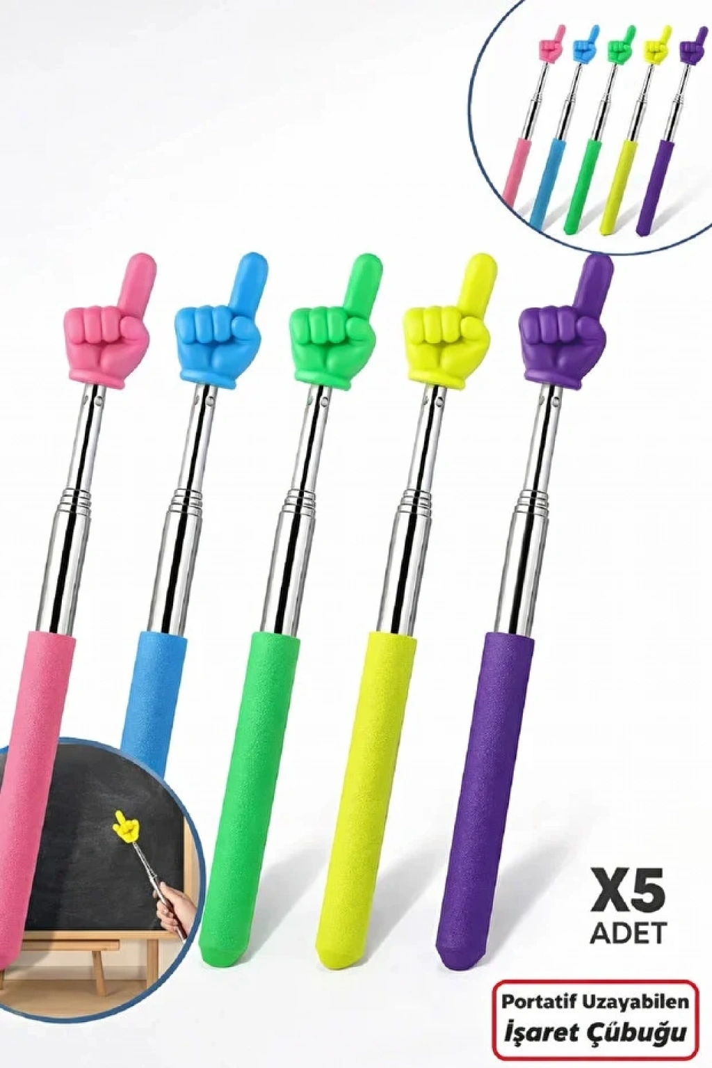 Portatif Uzayabilir Sevimli Parmak Öğretmen İşaret Tahta Çubuğu Teleskopik Çubuk | 5 Adet