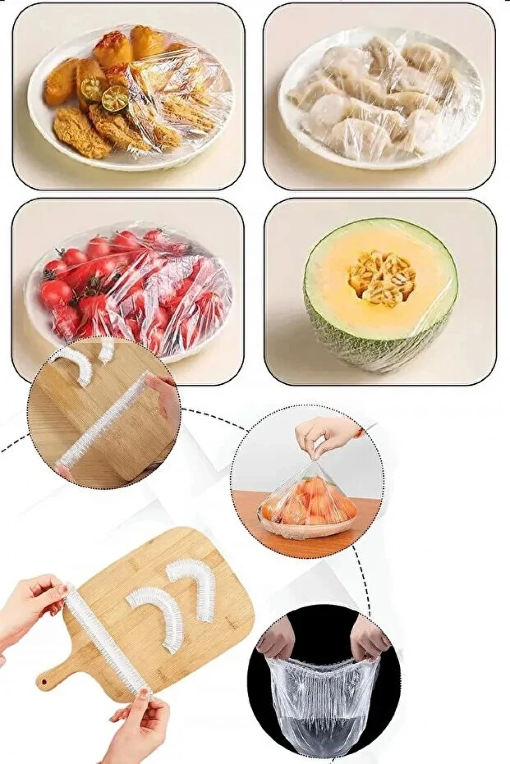 Şeffaf Bone Esnek Lastikli Pratik Tazeliği Koruyan Tencere Tabak Bonesi Gıda Saklama Bonesi 100'lü